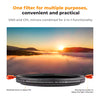 The K&F Concept 2-in-1 Variable ND2–ND32 + CPL Filter combines a neutral density filter and a circular polarizer in one compact design, giving photographers full control over light and reflections. With an adjustable ND range of 1–5 stops, it helps manage exposure for bright conditions, long exposures, and cinematic video recording.
